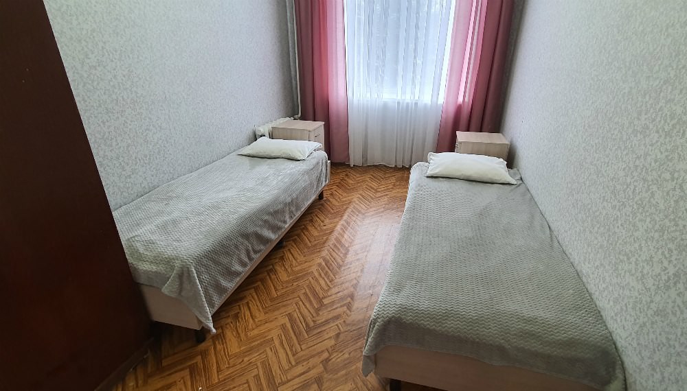 Количество комнат: 1-комнатный Кол-во основных мест: 2 Площадь (кв. м): 12 м². Мебель: кровать односпальная, прикроватная тумбочка, шкаф В номере: умывальник, телевизор, холодильник Санузел и душевая комната общего пользования на этаже Бесплатный Wi-Fi на всей территории санатория